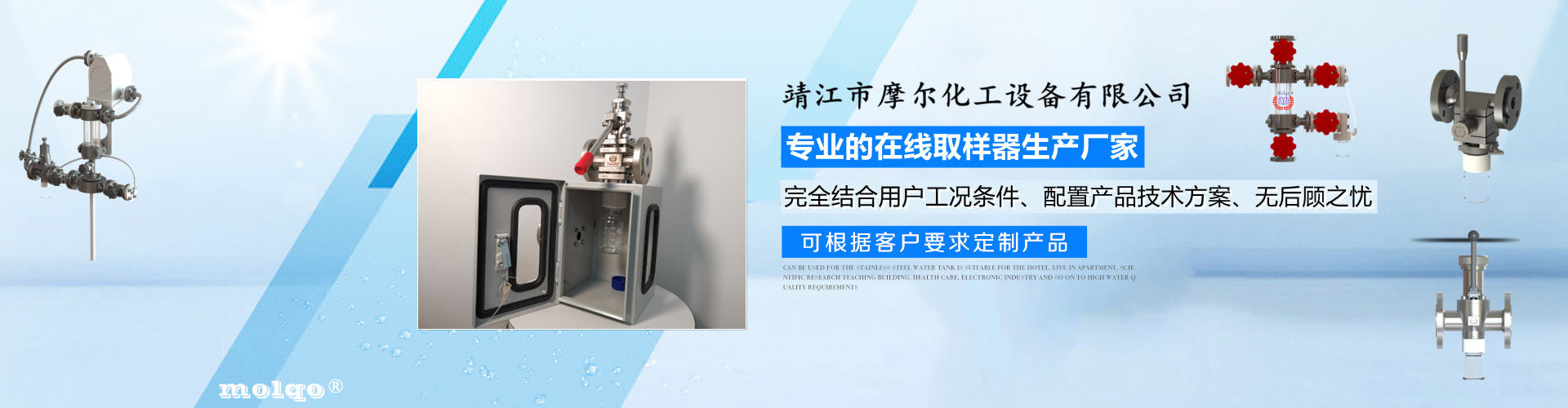 靖江市摩爾化工設備有限公司位于蘇中明珠——江蘇省靖江市城南工業園區東進路北側天元艾爾瑞內,另有生產基地位于靖江市經濟技術開發區新號路1號鼎電科技園內。我公司由數名長期從事化工生產、氟塑襯里模具開發以及機械自控設備的專業人員共同合作成立,致力于提供客戶最優的高效在線取樣、反應及精餾分離設備,為客戶提供合理的設備選型方案,以幫助客戶提高綜合生產效率以及改善生產現場環境為目標。 本公司主要制造及銷售的產品有:釜用在線取樣裝置,管道取樣閥,釜用清洗噴淋裝置、搪玻璃設備、GMP專用搪玻璃設備、氟塑襯里設備、攪拌器、釜用機械密封、氣動閥門及搪玻璃管道、襯氟閥門管道、非標不銹鋼容器,精餾塔塔器、片式冷凝器及PTFE密封件、鋯、鈦、鉭、鎳等加工件制品。我司是一家集研發銷售、設計咨詢服務于一體的專業···| 讷河市 | 泰州市 | 溧阳市 | 高淳县 | 汨罗市 | 敦化市 |